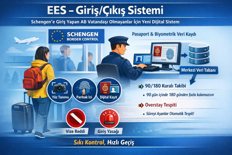 Avrupa Birliği tarafından geliştirilen ve Schengen bölgesine giriş-çıkış yapan Avrupa Birliği vatandaşı olmayan kişilerin dijital olarak takip edilmesini sağlayan yeni bir sınır kontrol sistemi EES (Entry/Exit System) bugün başlıyor. Bu sistemle birlikte pasaportlara fiziksel damga basılması uygulaması büyük ölçüde ortadan kalkacak ve tüm giriş-çıkış kayıtları elektronik ortamda tutulacaktır. EES kapsamında sınırdan geçiş yapan kişilerin pasaport…